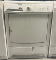 Vrijstaande Zanussi condensdroger met 7 kg vulgewicht en trommelinhoud van circa 108 liter; energieklasse B met energieverbruik rond 4,16 kWh per standaard katoenprogramma en circa 504 kWh per jaar; programmakeuzeknop met standen voor katoen (extra droog, kastdroog, strijkdroog), synthetica, Mix, Baby, Jeans, opfrissen en tijdsprogramma’s van 30 en 60 minuten; sensorgestuurd drogen op verschillende droogtegradaties; lange anti-kreukfase na afloop om vouwen te beperken; opties Lage temperatuur, Lange anti-kreuk, Zoemer en Startuitstel; duidelijke indicatielampjes voor drogen, anti-kreuk/einde, condensor, filters en waterhouder; condensreservoir aan de voorkant en mogelijkheid om via een optionele afvoerset het condenswater direct naar een afvoer te leiden; vrijstaand toestel met afmetingen circa 850 × 600 × 580 mm (h×b×d), maximale diepte met deur geopend circa 1090 mm en maximale breedte met deur geopend circa 950 mm; aansluitgegevens 230 V, 50 Hz, zekering 16 A, totaalvermogen 2350 W.