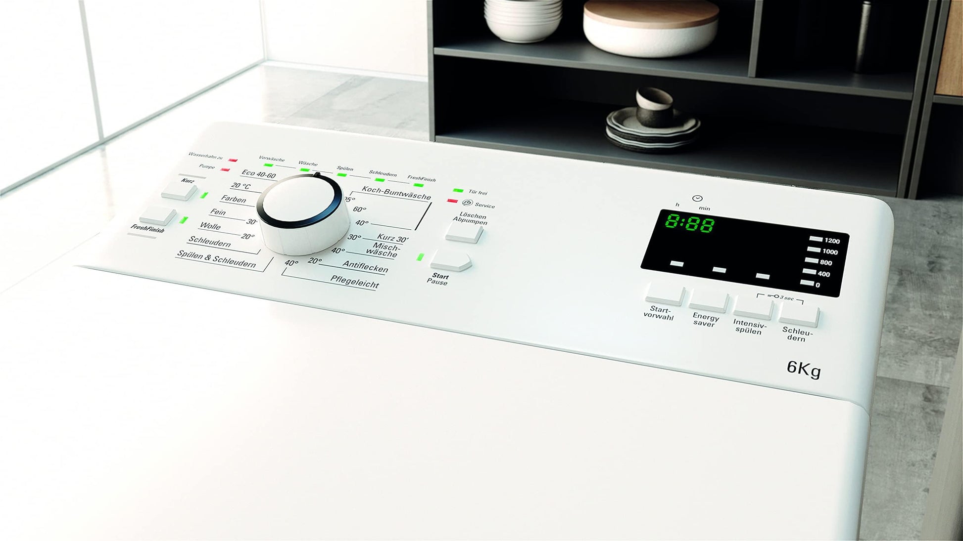 De Bauknecht WAT Smart Eco 12C is een compacte en energiezuinige bovenlader wasmachine met een capaciteit van 6 kg, ideaal voor kleinere huishoudens of beperkte ruimtes.